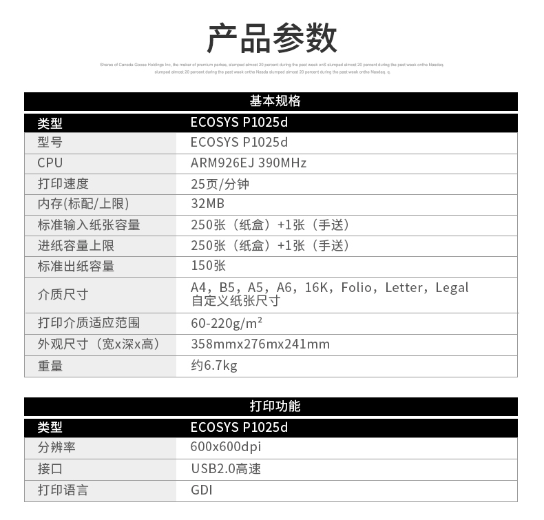 • 產(chǎn)品品牌:京瓷(KYOCERA)P1025d激光打印機