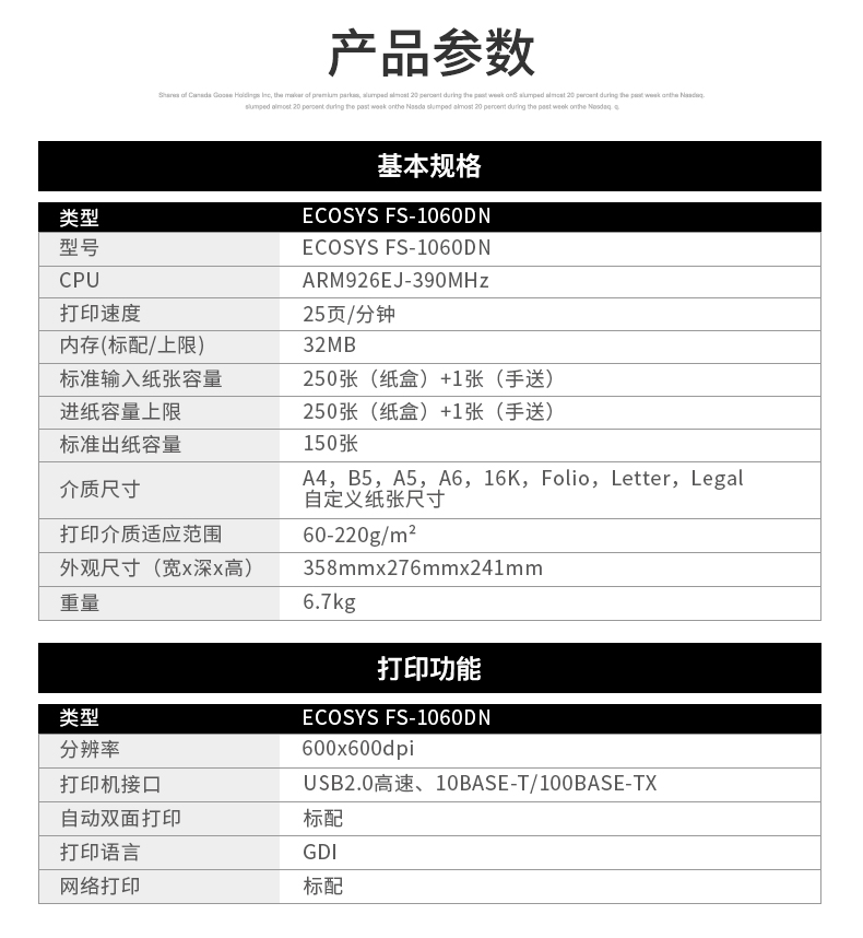 • 產(chǎn)品品牌:京瓷(KYOCERA)FS-1060DN激光打印機