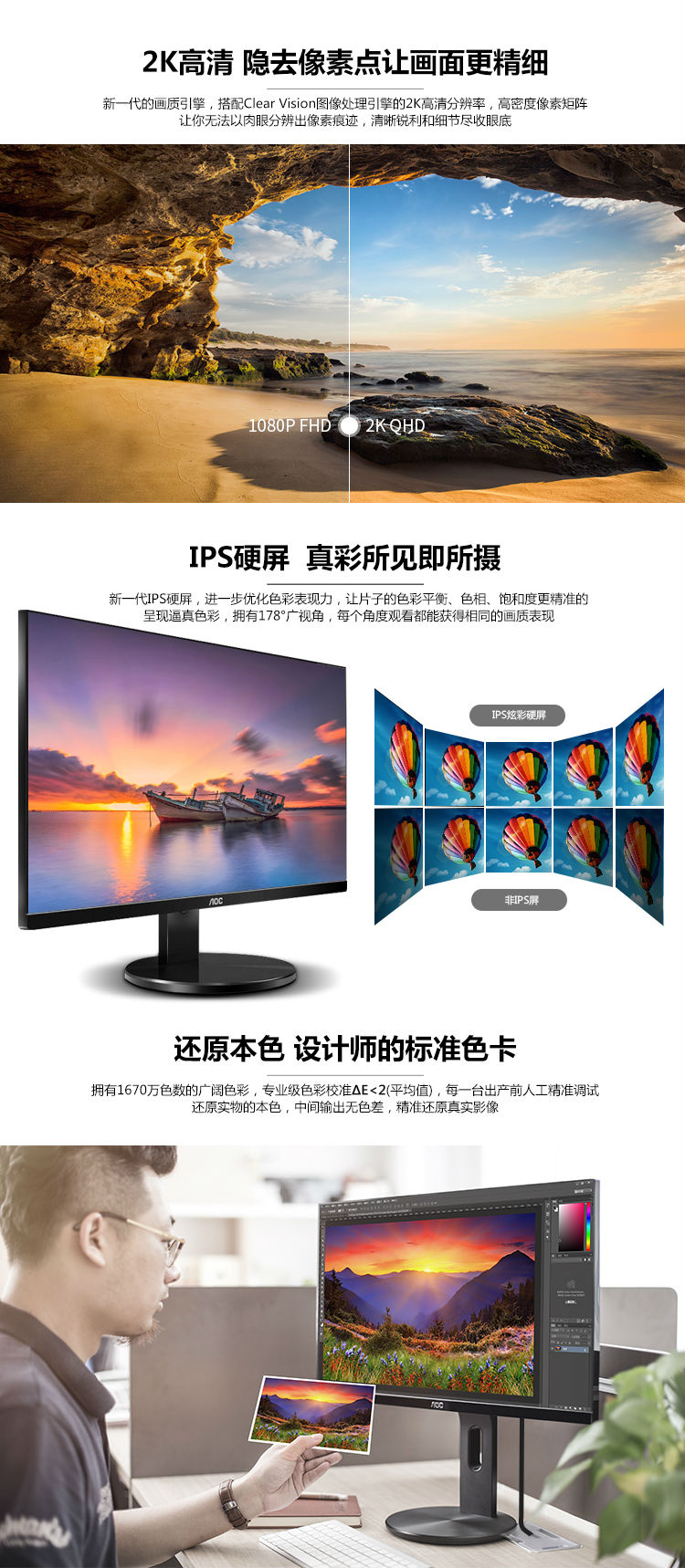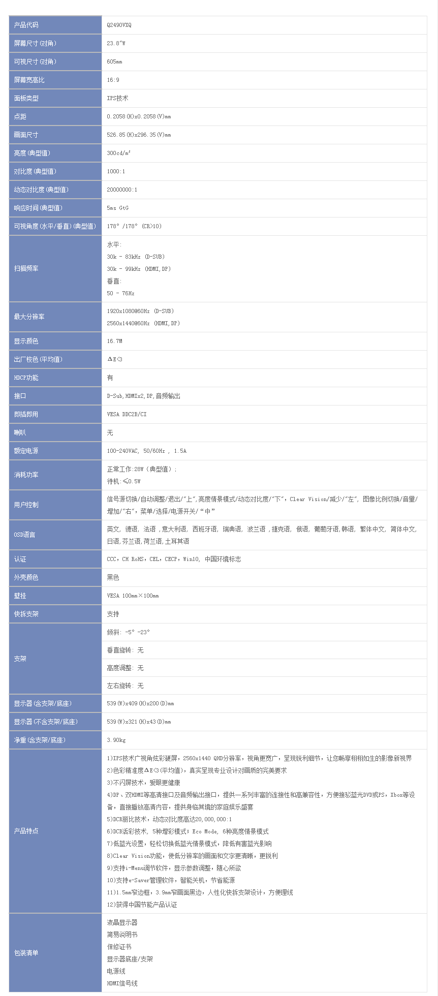 • 產(chǎn)品名稱:AOC顯示器 Q2490VXQ 23.8寸 IPS 2K無邊框高清液晶顯示器