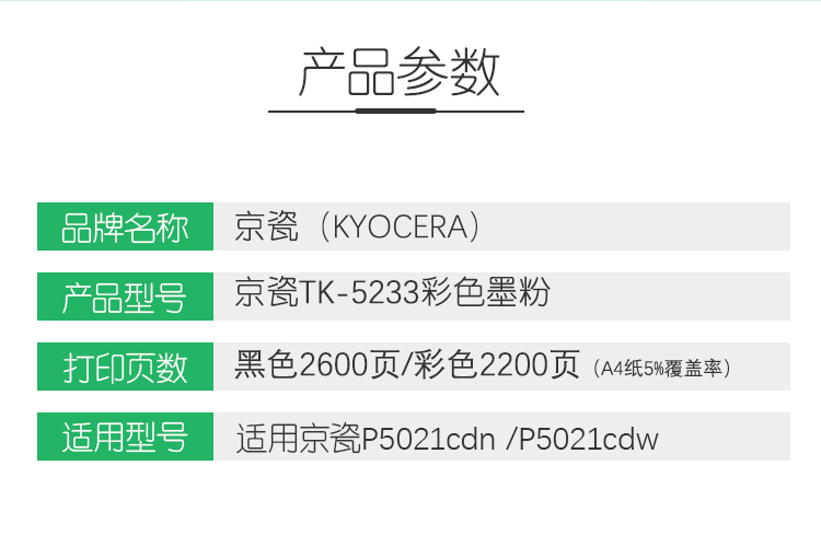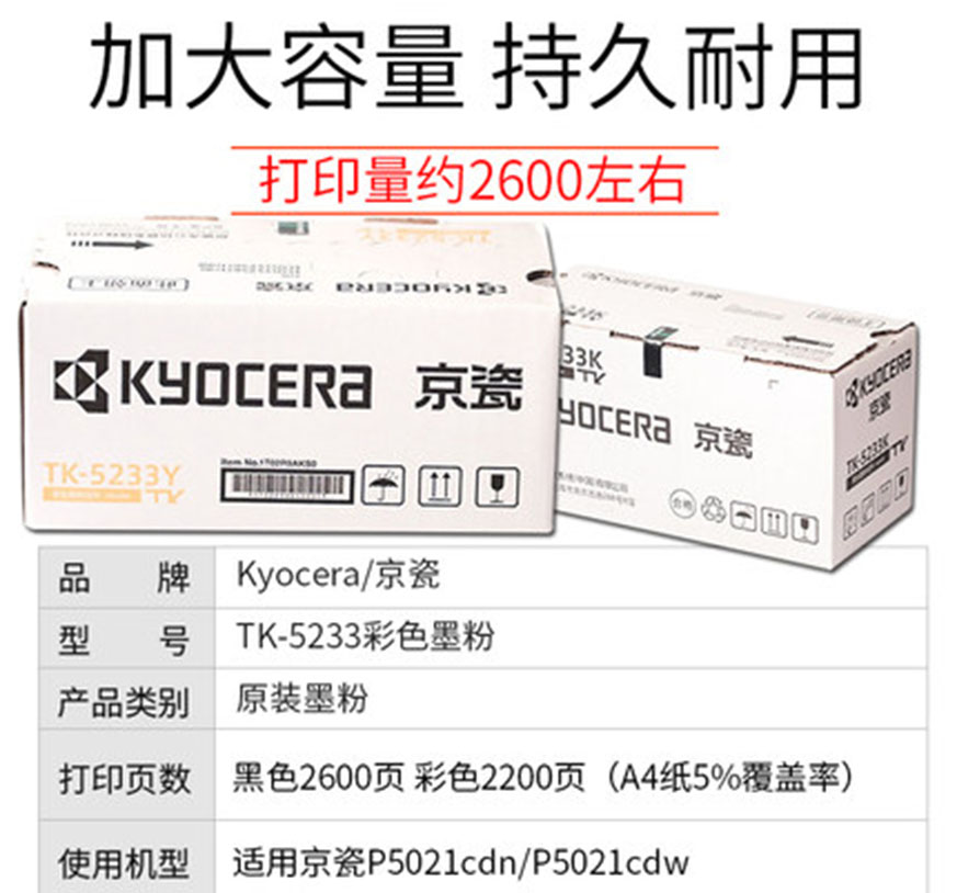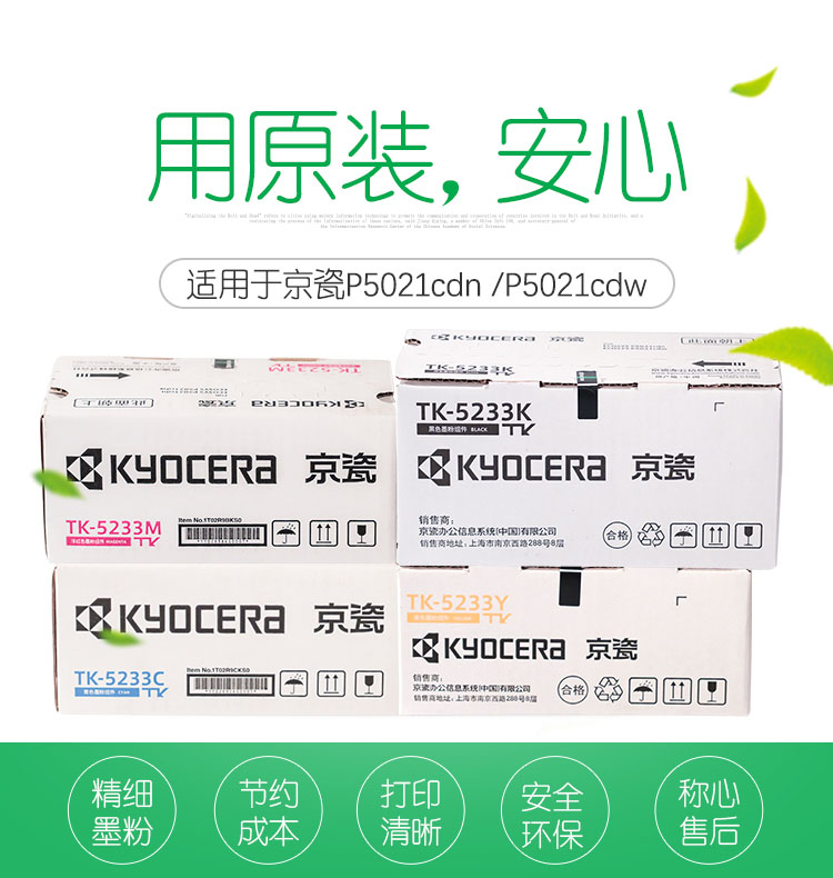 • 產(chǎn)品名稱:原裝京瓷TK-5233 CMYK墨盒粉盒適用P5021cdn P5021cdw