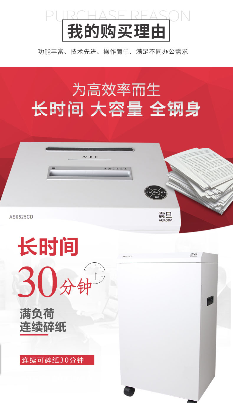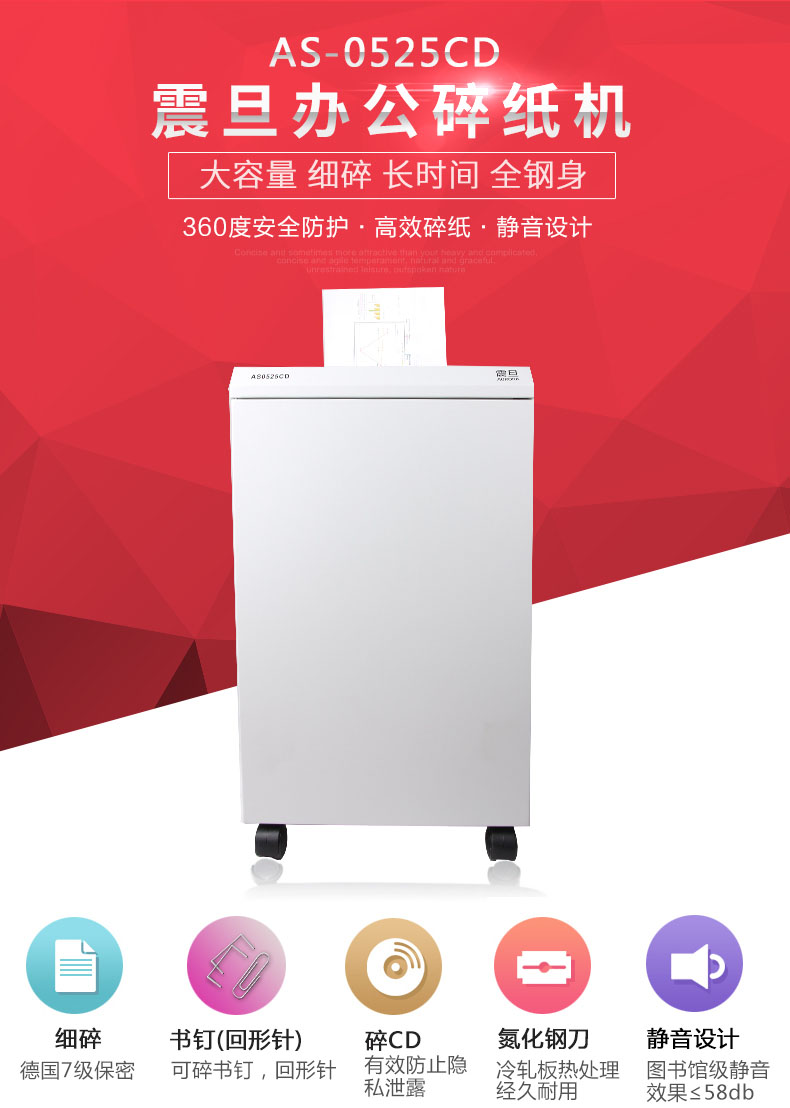 • 產(chǎn)品名稱:震旦AS0525CD 德國7級保密全鋼機身大容量專業(yè)級辦公碎紙機高保密大型