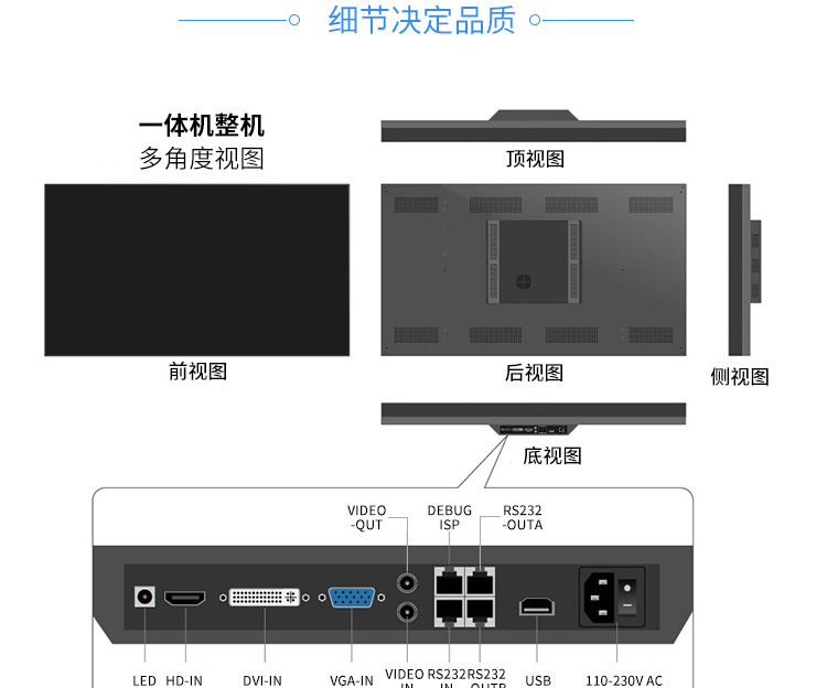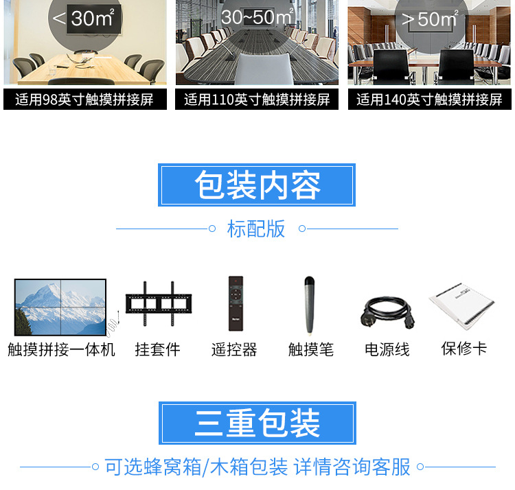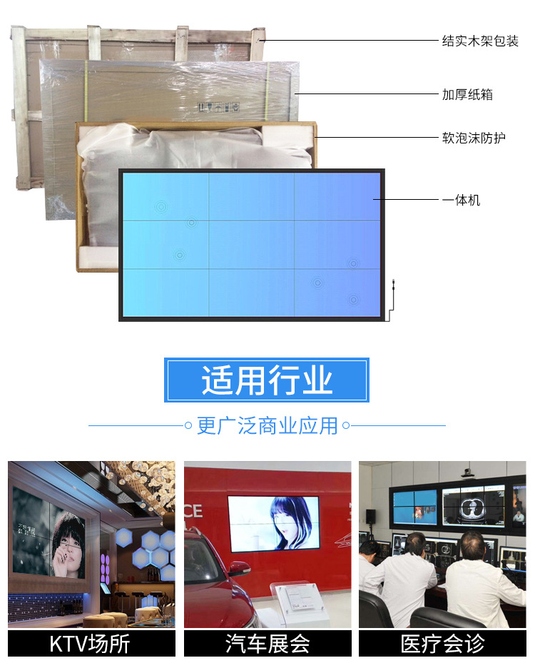 • 產品名稱:藍舟98寸110寸140寸液晶拼接屏窄邊拼縫會議監(jiān)控觸摸拼接一體機
