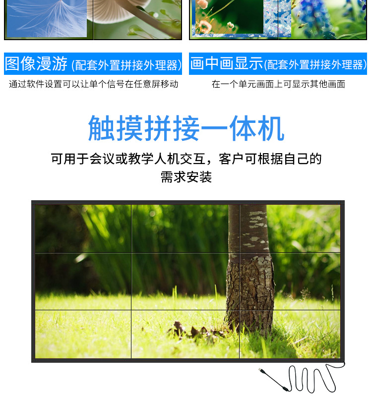 • 產品品牌:藍舟98寸110寸140寸液晶拼接屏窄邊拼縫會議監(jiān)控觸摸拼接一體機