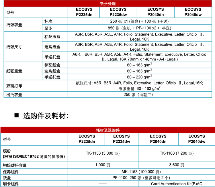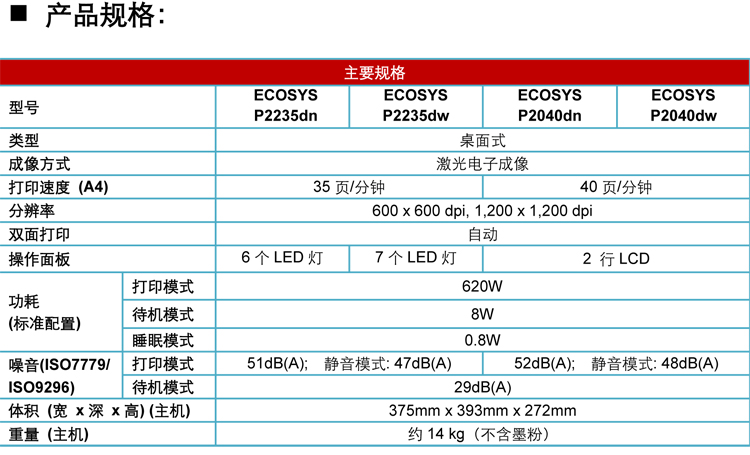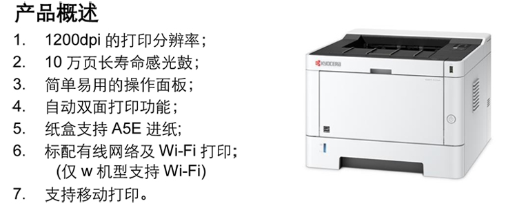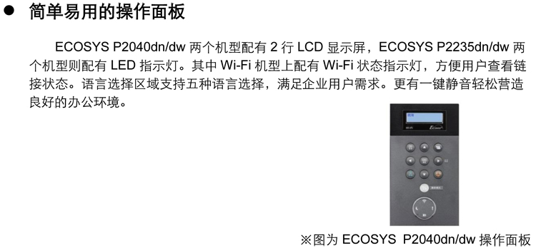 • 產(chǎn)品品牌:京瓷(KYOCERA)P2040dw激光打印機(jī)