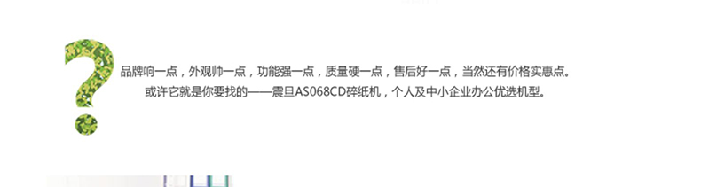 • 產(chǎn)品名稱:震旦 AS068CD多功能碎紙機(jī)辦公單次6張5級(jí)保密低音碎CD
