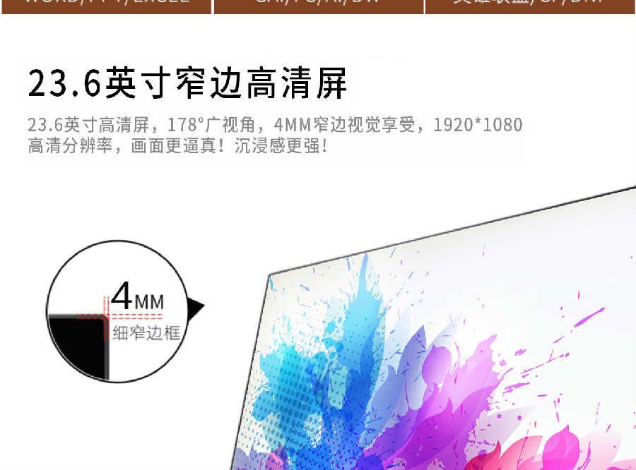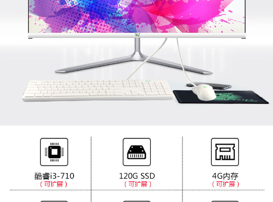 • HL一體機臺式電腦 AV241W 23.6英寸高清屏家用辦公 G4560 8G內(nèi)存 128固態(tài) 白色