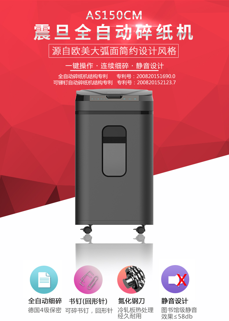 • 產(chǎn)品品牌:震旦 AS150CM全自動(dòng)商務(wù)辦公碎紙機(jī) (手動(dòng)10張自動(dòng)150張4級(jí)保密)大型自動(dòng)