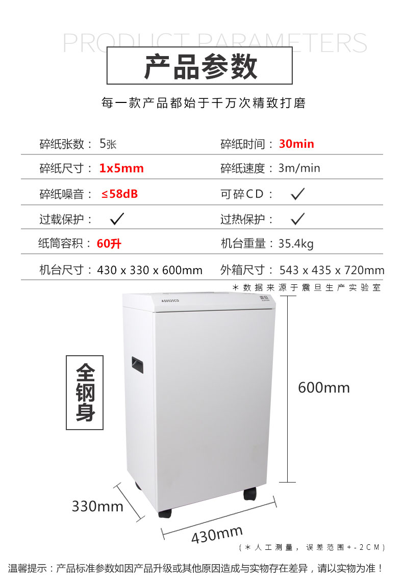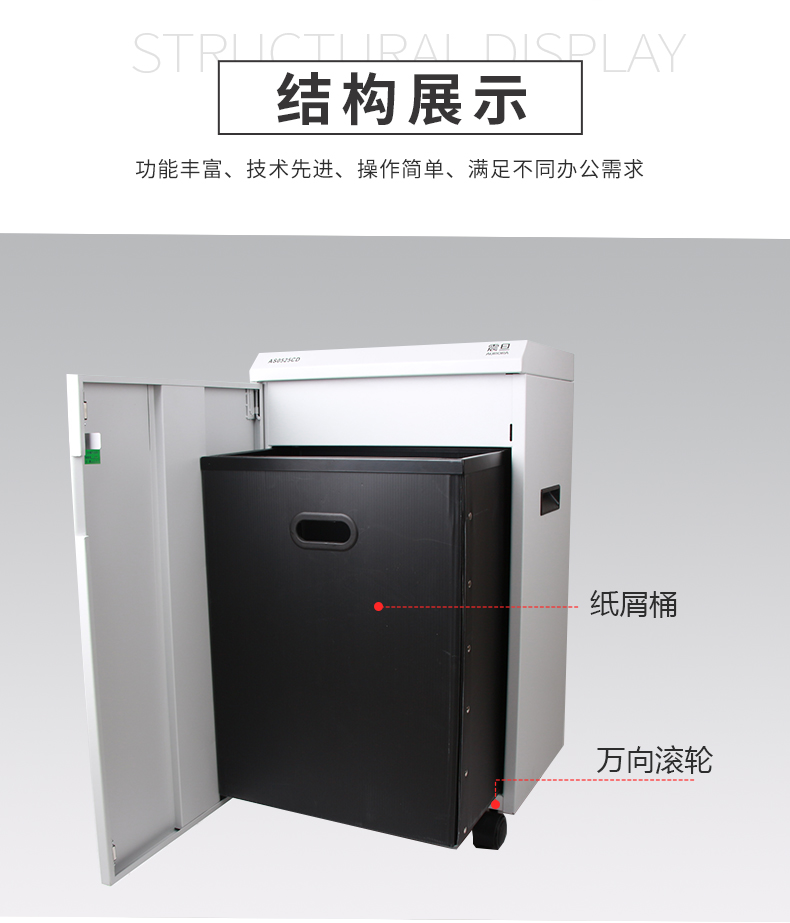 • 產(chǎn)品名稱:震旦AS0525CD 德國7級保密全鋼機身大容量專業(yè)級辦公碎紙機高保密大型