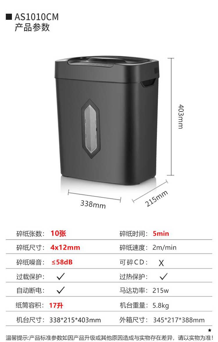 • 產(chǎn)品名稱:震旦碎紙機 AS1010CM 高保密4級單次10張低音辦公碎紙機