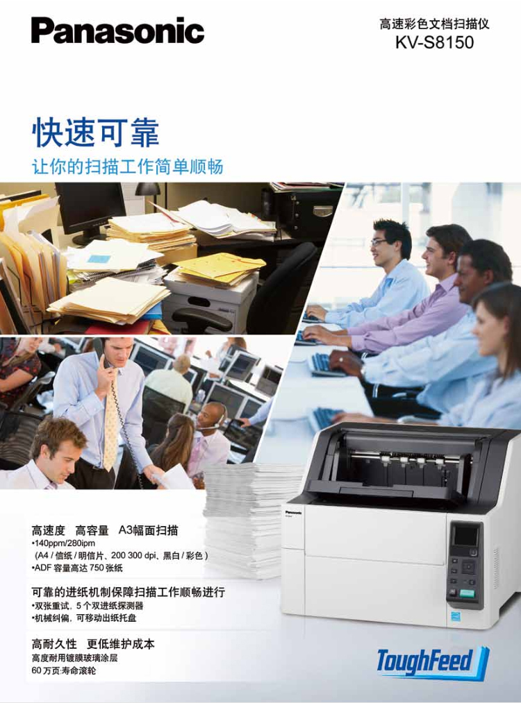 • 產品名稱:松下 KV-S8150 A3高速雙面自動饋紙文檔掃描儀