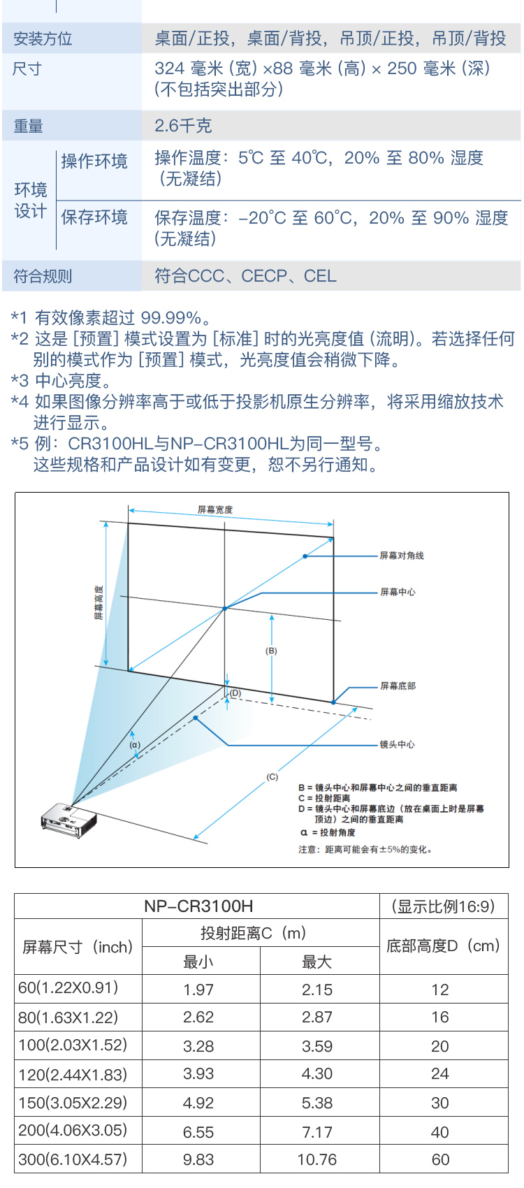 • 產(chǎn)品名稱:NEC NP- CR3100H 投影機(jī)家用 全高清投影儀(1080P 2800流明 )