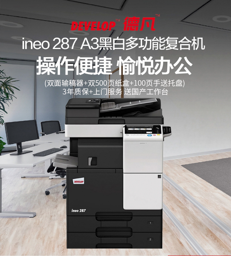 • 產(chǎn)品品牌:德凡 DEVELOP ineo287 A3黑白多功能復(fù)合機(jī)標(biāo)配