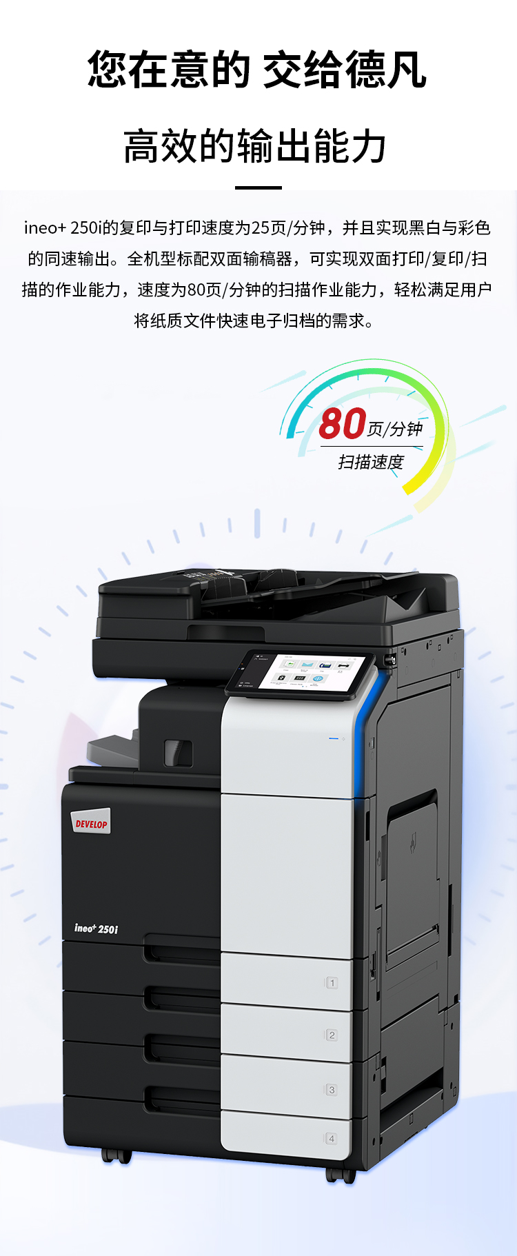 • 產(chǎn)品名稱(chēng):德凡 DEVELOP ineo+250i A3彩色多功能復(fù)合機(jī)
