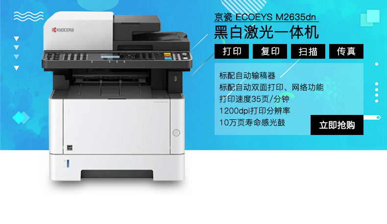 • 產(chǎn)品品牌:京瓷(KYOCERA)M2635dn多功能一體機(jī)