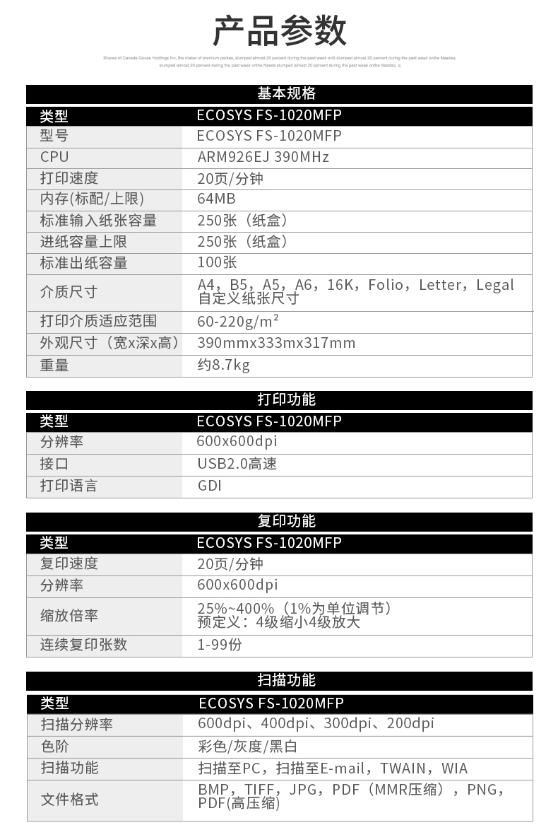 • 產(chǎn)品品牌:京瓷(KYOCERA)FS-1020MFP多功能一體機(jī)